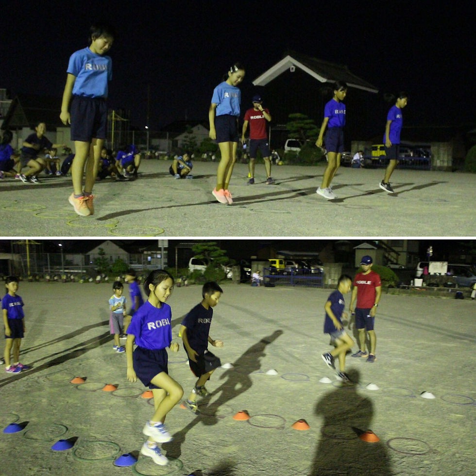 続く2部練習では、ROBLEキッズでは新しい用具、 ミニハードル を使用して、